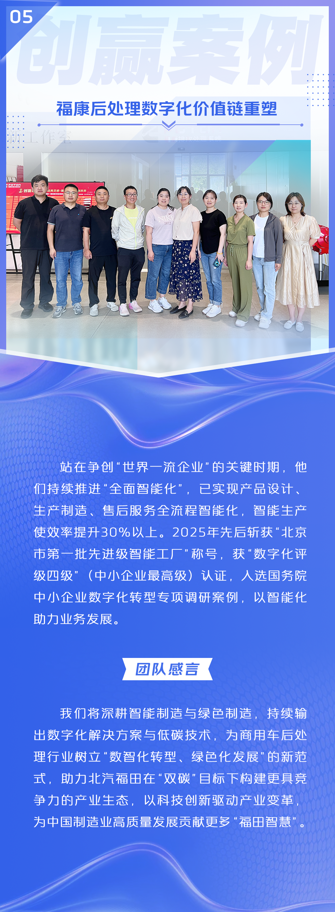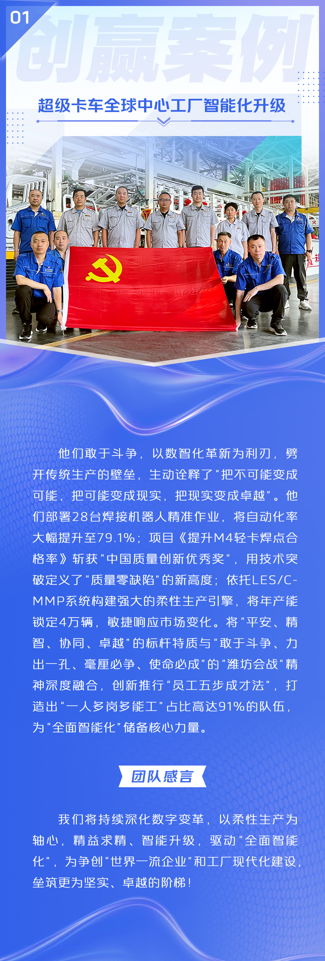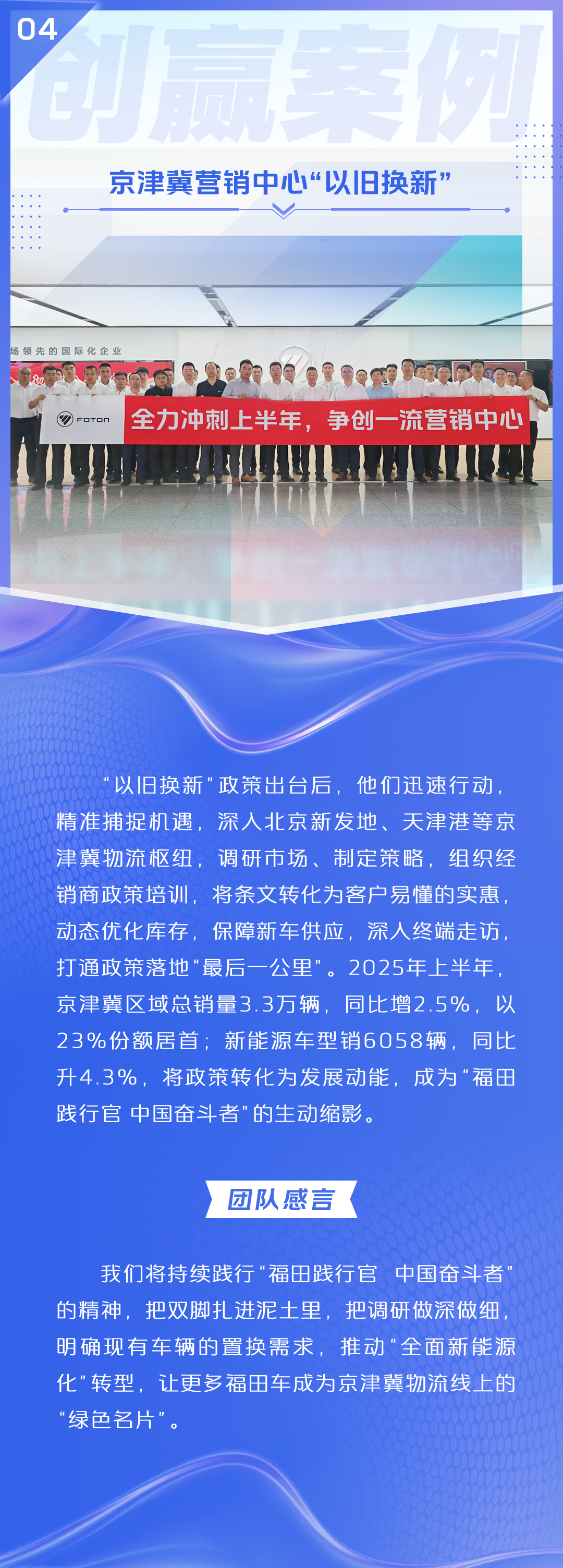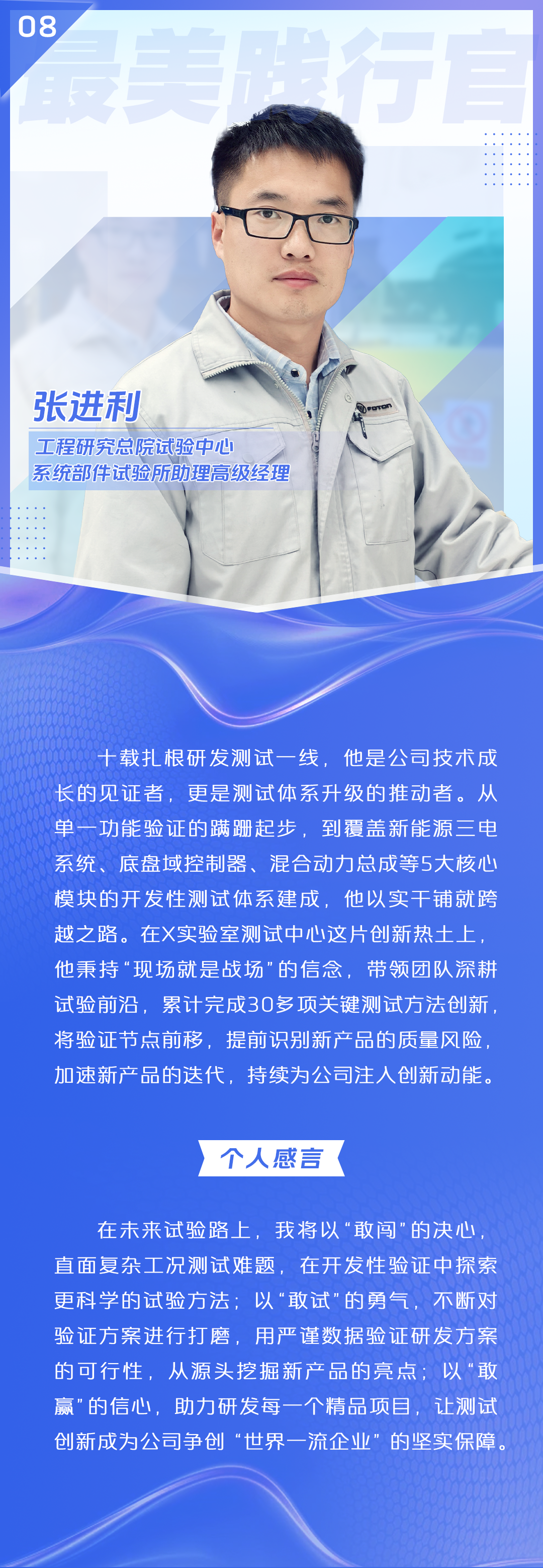 近期,2025年首批“最美践行官”认证评选活动火热开展,通过线上投票和线下推荐,累计参与人次达52W+。聚光灯下,10名“最美践行官”、5个“创赢案例”脱颖而出。他们当中,有“敢创赢”的“营销闯将”,让新能源销量飙升300%;有“新精专”的“研发精英”,攻坚液氢技术,树立新能源重卡标杆;有酣战智能制造的“国赛冠军”,在毫厘之间奏响“新质生产力”强音……他们以“敢闯 敢试 敢赢”的先锋姿态,诠释了平凡岗位的非凡价值,彰显了“福田践行官”即“中国奋斗者”的深刻内涵,为争创“世界一流企业”注入跃升动力!